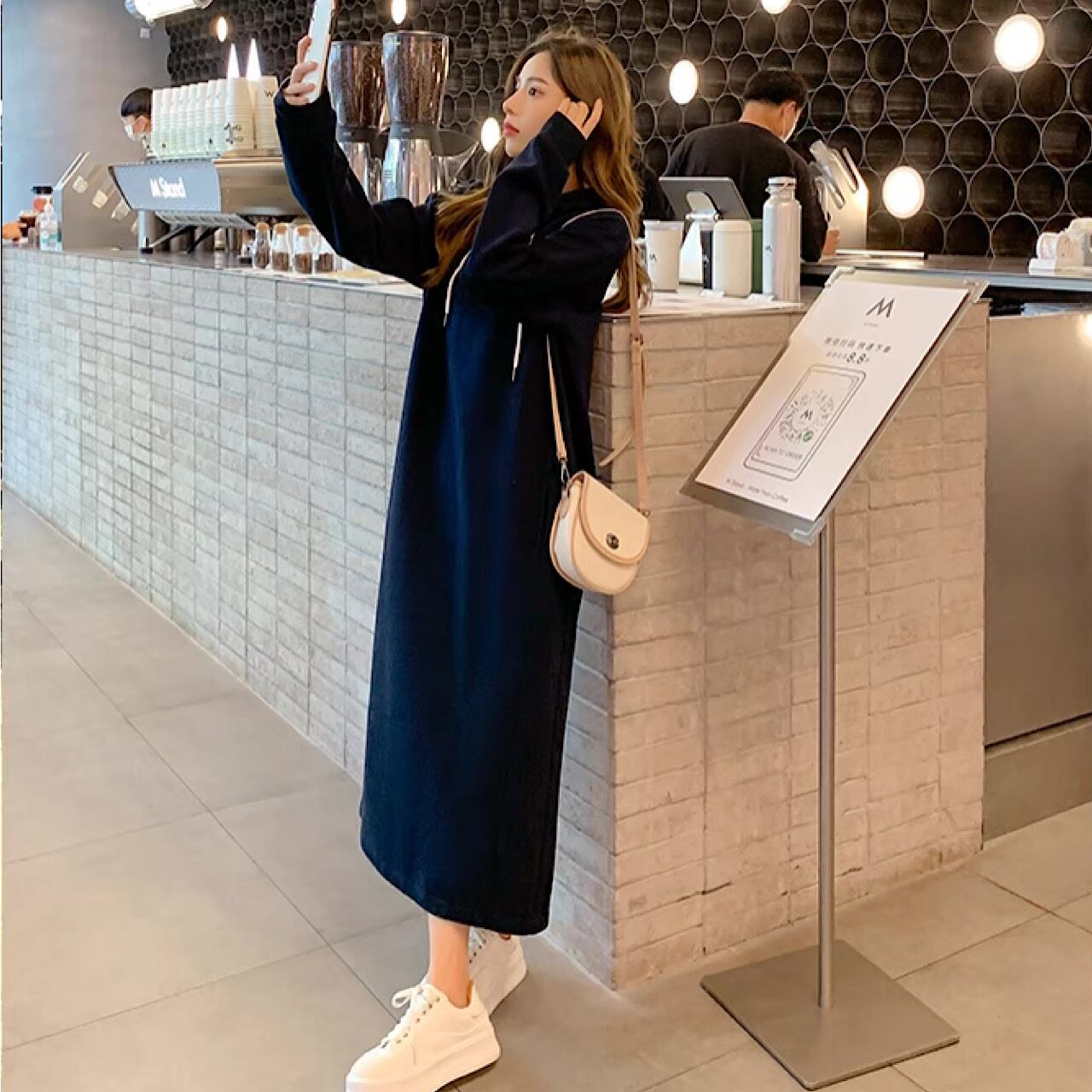 フード付き セーター ドレス スーパー ロング ジャンプ スーツ ワンピース 長袖 きれいめ aライン ロング 大きいサイズ かわいい 黒 春冬 シンプル レディース 韓国 カジュアル 大人 レトロ 30代 40代 50代 OP-264KMY