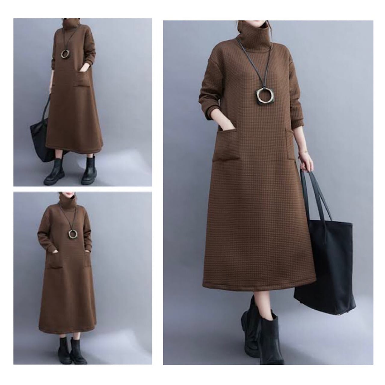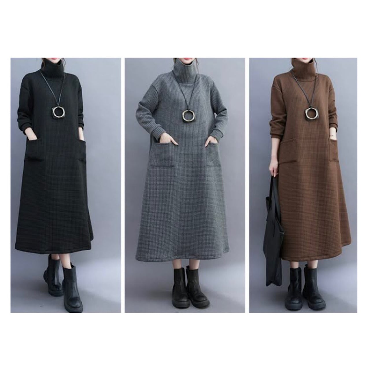 ポケット 無地 格子 長袖 ワンピース ドレス きれいめ ロング 大きいサイズ かわいい 黒 春冬 シンプル レディース 韓国 カジュアル 大人 レトロ フォーマル 30代 40代 50代 OP-271KMY