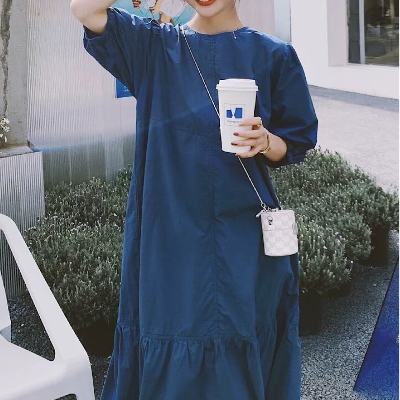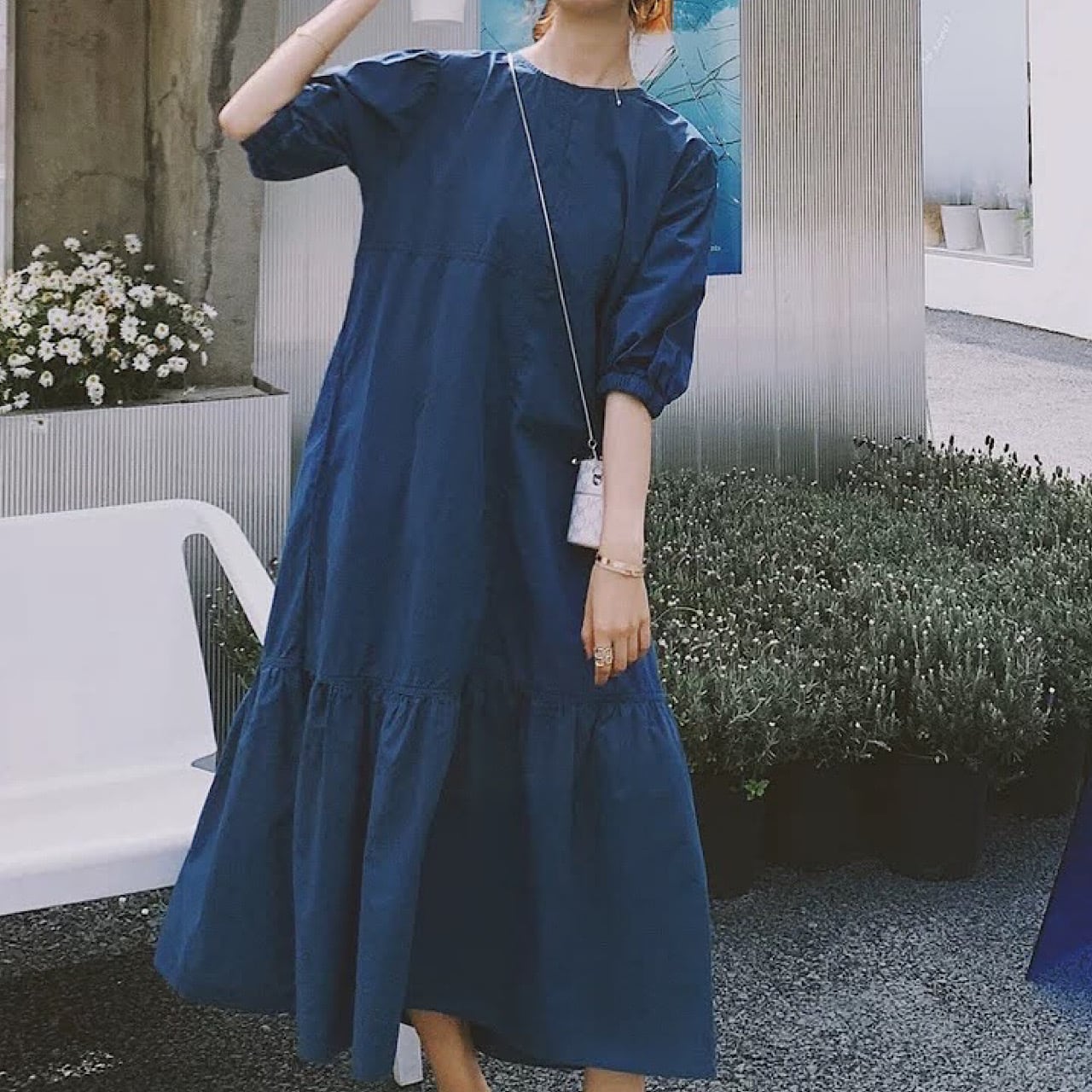 青い ドレス 夏 薄い ワンピース ドレス 半袖 きれいめ aライン ロング 大きいサイズ かわいい 春夏 シンプル レディース 韓国 カジュアル 大人 レトロ 30代 40代 50代 OP-282KMY
