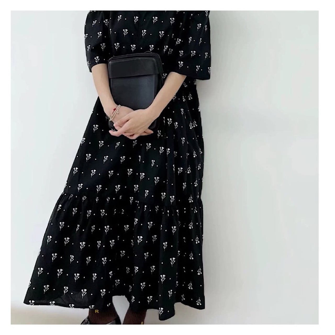 夏 ゆるい ラウンド ネック ステッチ 甘い プリント ワンピース ドレス 半袖 きれいめ aライン ロング 大きいサイズ かわいい 黒白 春夏 シンプル レディース 韓国 カジュアル 大人 レトロ 30代 40代 50代 OP-283KMY