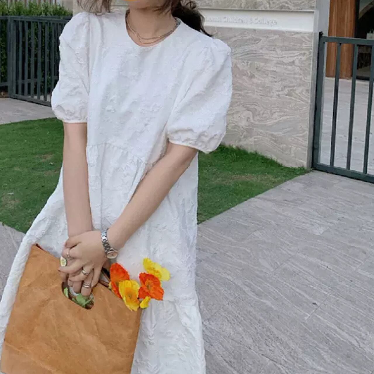 夏 新作 ホワイト ブラック ワンピース ドレス 半袖 きれいめ aライン ロング 大きいサイズ かわいい 春夏 シンプル レディース 韓国 カジュアル 大人 レトロ 30代 40代 50代 OP-285KMY