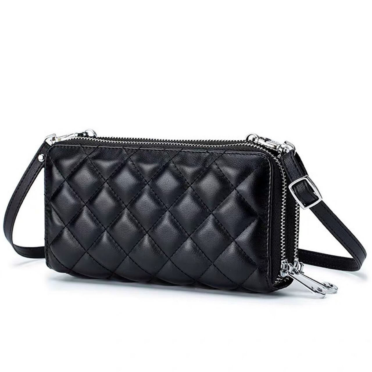 レディース ダブルファスナー 長財布 大容量 斜めクロス 財布 マザー 韓国 スマホ ショルダー バック ポーチ ストラップ 4色展開 本革 財布 大人 かわいい おしゃれ 斜めがけ 軽量 人気 ママ シンプル 小さめ 小さい BG-107KMY
