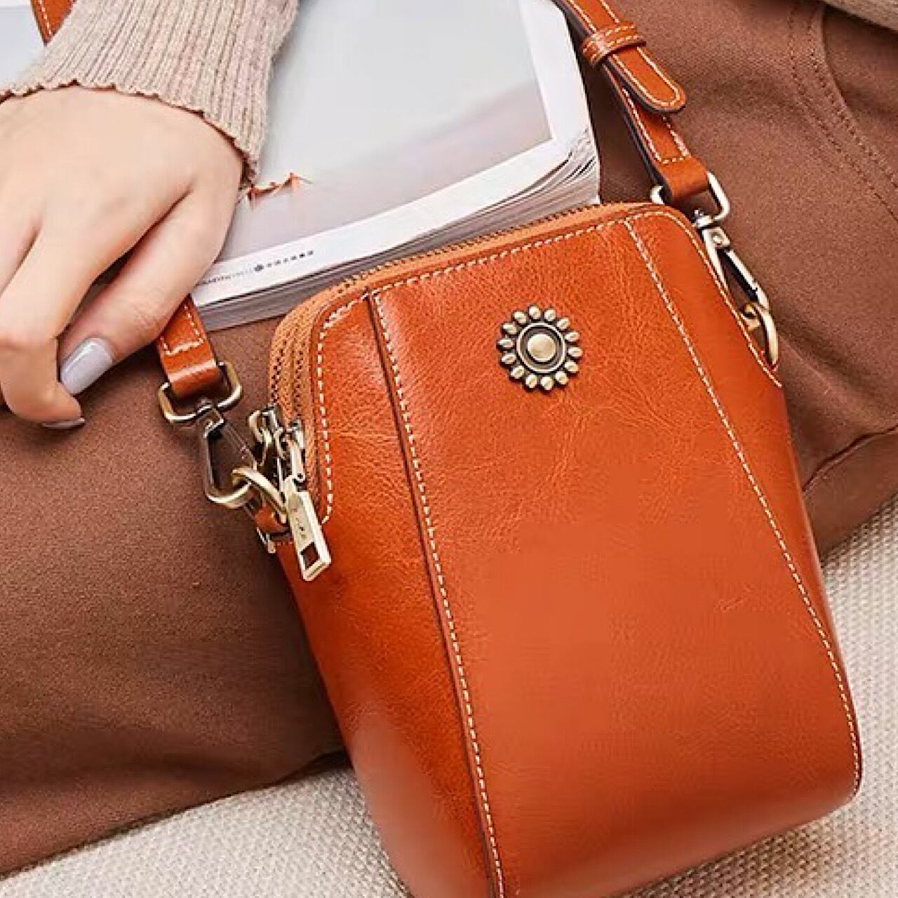 新作 春夏 本革レディース 携帯電話 ミニショルダー ブラウン 女性バッグ スマホ ショルダー バック ポーチ レディース ストラップ 財布 大人 かわいい おしゃれ 斜めがけ 軽量 人気 ママ シンプル 小さめ 小さい BG-114KMY
