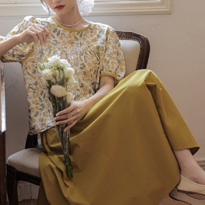 新作 シフォンフルーティーブラウス トップス 半袖 シャツ フルーツ柄 ボタニカル きれいめ プリント シャツ 春夏秋 デート お出かけ お呼ばれ レディース 体型カバー ラウンドネック 着回し 大人可愛い かわいい フェミニン きれいめ エレガント 20代 30代 40代