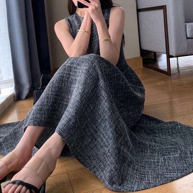グレー ツイード ギャザー ワンピース ロング 長め ドレス 着回し 春 夏 秋 ノースリーブ フレア Aライン ラウンドネック きれいめ オケージョン 結婚式 入学式 卒業式 入園式 卒園式 お呼ばれ 二次会 発表会 シンプル 大人 レディース グレー 20代 30代 40代 50代