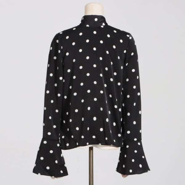 カラー:ブラック サイズ:cm S:肩幅41 バスト99 袖丈66.5 ウエスト99 着丈62 M:肩幅42 バスト103 袖丈67.5 ウエスト103 着丈63 L:肩幅43 バスト109 袖丈68.5 ウエスト109 着丈64 XL:肩幅44 バスト115 袖丈69.5 ウエスト115 着丈65 トレンドのドットブラウス。 ベルスリーブがエレガント♪ ■注意点 ・お取り寄せ商品となります。納期までに約2-4週間かかります。 ・パソコンやモニターの環境により実際の色と異なる場合があります。 ・ノーブランド海外製品は日本の商品に比べて裁縫が甘い場合がございます。 ・サイズは1cm~4cmの差が生じる場合があります。 以上の事にご同意いただける方のみご購入ください。ご同意いただけない方は実店舗で現物をご確認されることをお勧めいたします。