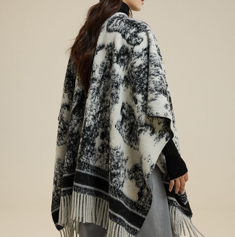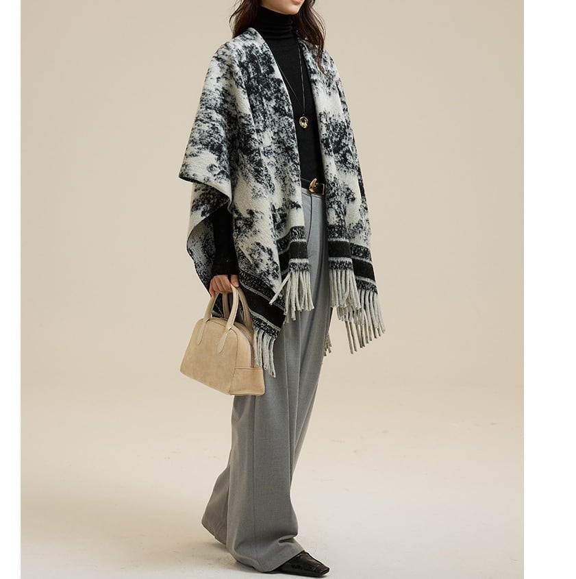 新作 タッセル フリンジ ケープ風 マント ショール 水墨画 ケープ ストール 大判 防寒 演奏会 フォーマル パーティー 羽織り レディース コーデ 秋冬 エレガント おすすめ 韓国 着痩せ 丈 大人 デート おしゃれ 20代 30代 40代 50代